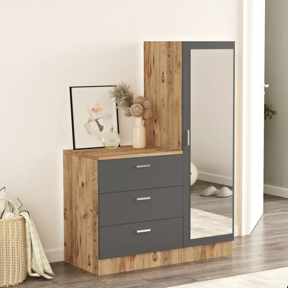 Τουαλέτα ArteLibre BLENDON Πεύκο/Ανθρακί Μοριοσανίδα/Γυαλί 60x47x72cm/40x47x140cm