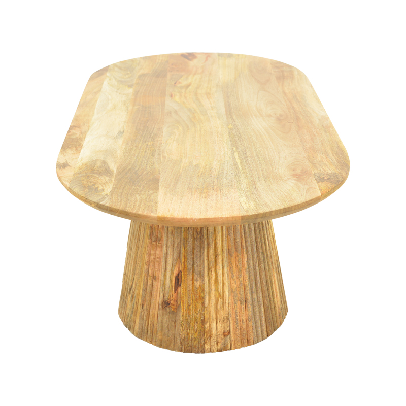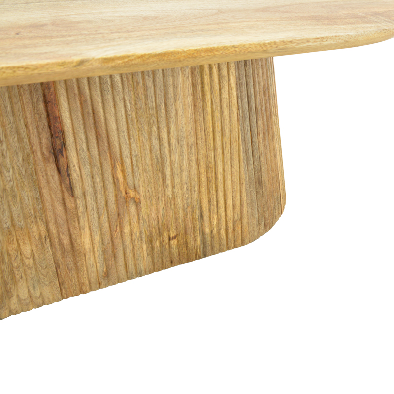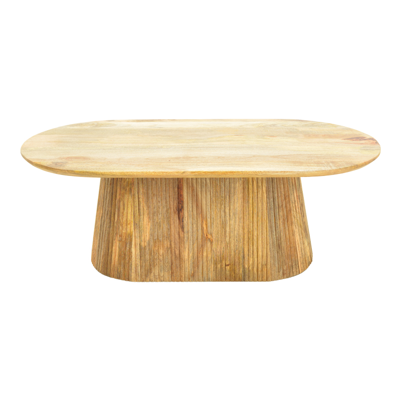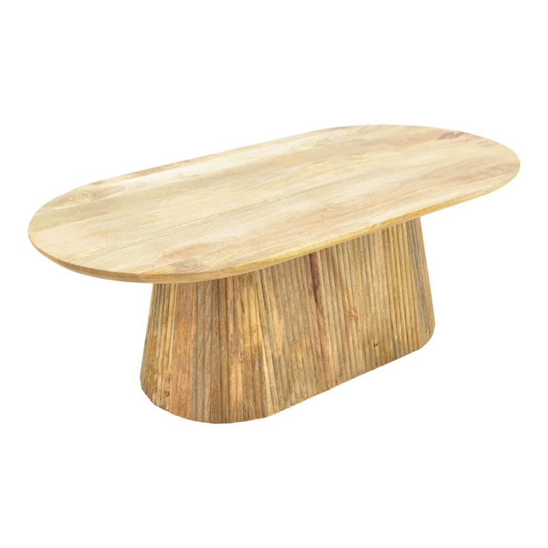 Τραπεζάκι σαλονιού Aithra από μασίφ ξύλο mango με μοντέρνο σχεδιασμό και φυσική αισθητική. Η οβάλ επιφάνειά του αναδεικνύει τη φυσική υφή και τα νερά του ξύλου, προσδίδοντας ζεστασιά και κομψότητα στον χώρο.