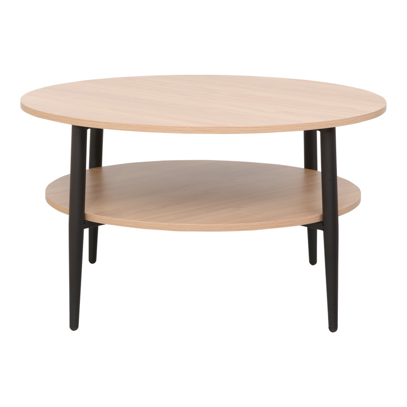 Τραπέζι σαλονιού Kody pakoworld σε φυσική απόχρωση με μαύρα μεταλλικά πόδια Φ80×45εκ