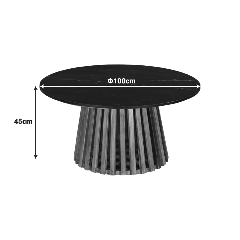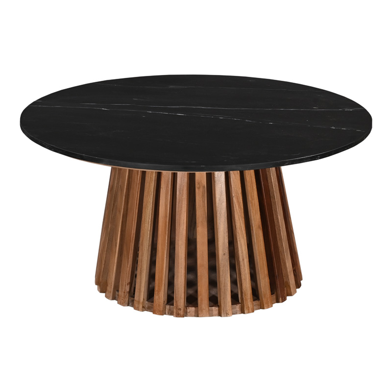 Τραπέζι σαλονιού Mable pakoworld μασίφ ξύλο ακακίας σε φυσική απόχρωση και επιφάνεια μαύρου μαρμάρου Φ100×45εκ