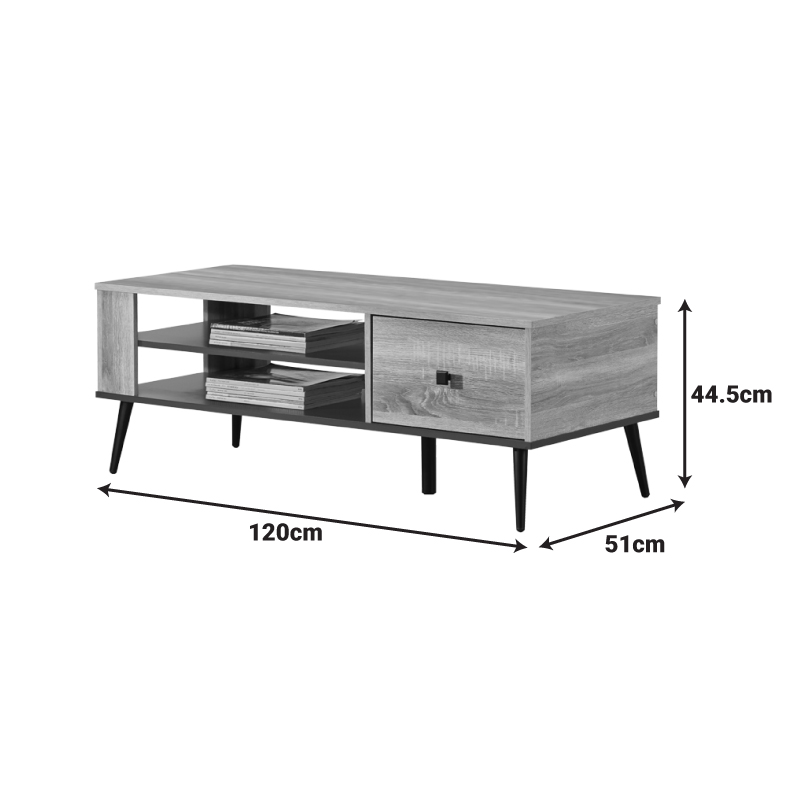 Τραπέζι σαλονιού Zezan pakoworld σε sonoma-ανθρακί απόχρωση 120x51x44.5εκ