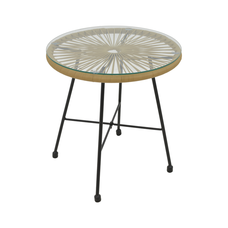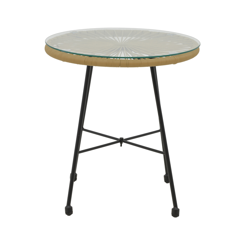 Τραπέζι Acapulco pakoworld μαύρο μέταλλο – pe rattan σε φυσική απόχρωση Φ50×50εκ
