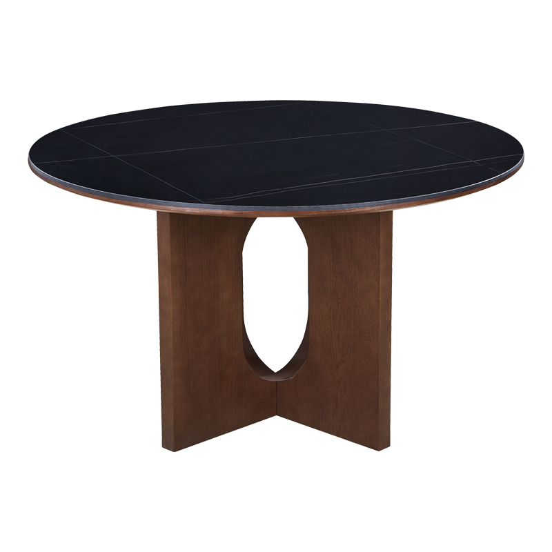 Τραπέζι Merge pakoworld sintered stone-mdf σε μαύρο μαρμάρου με καρυδί βάση Φ130×75εκ