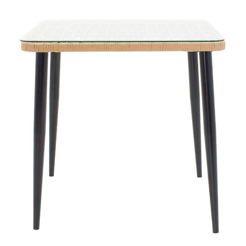 Τραπέζι Naoki pakoworld γυαλί-μέταλλο μαύρο-pe rattan σε φυσική απόχρωση 80x80x78εκ