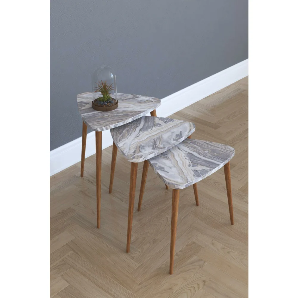 Τραπεζάκι Βοηθητικό ArteLibre ABIDEMI Γκρι/Όψη Μαρμάρου Μοριοσανίδα/Ξύλο 35×52/35×47/35x42cm Σετ 3Τμχ