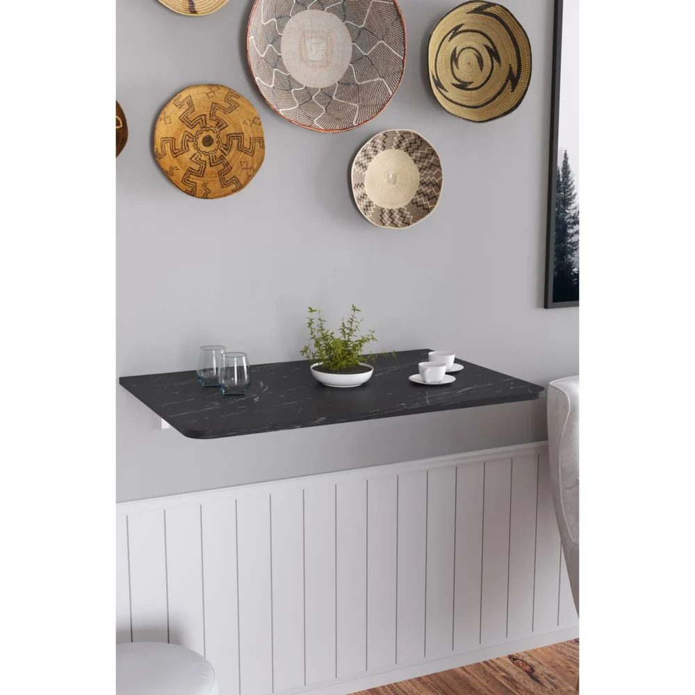 Τραπεζάκι Πτυσσόμενο Τοίχου ArteLibre ANAICA Μαύρο Μοριοσανίδα 90x60cm