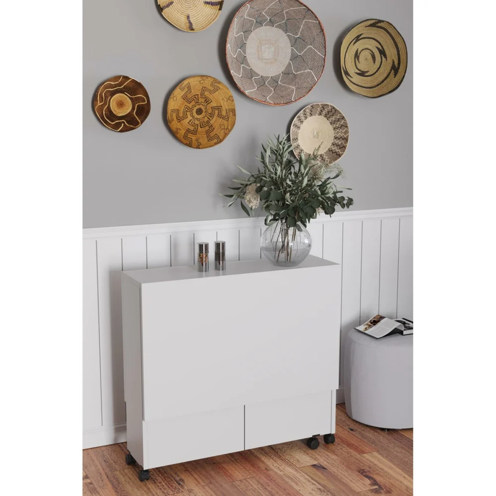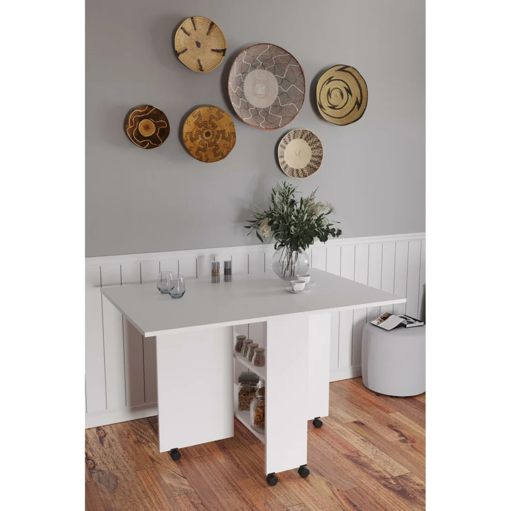 Τραπεζάκι Πτυσσόμενο ArteLibre Με Ροδάκια STANLEY Λευκό Μοριοσανίδα 120x80x73cm
