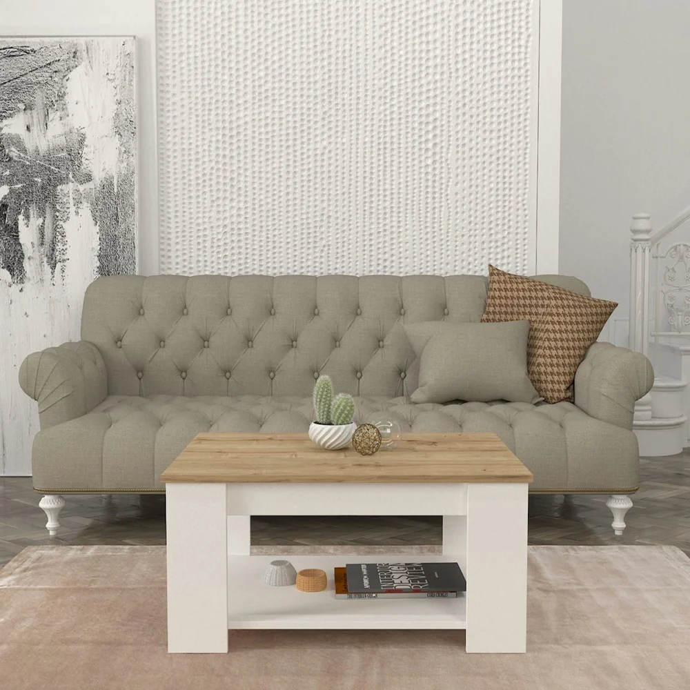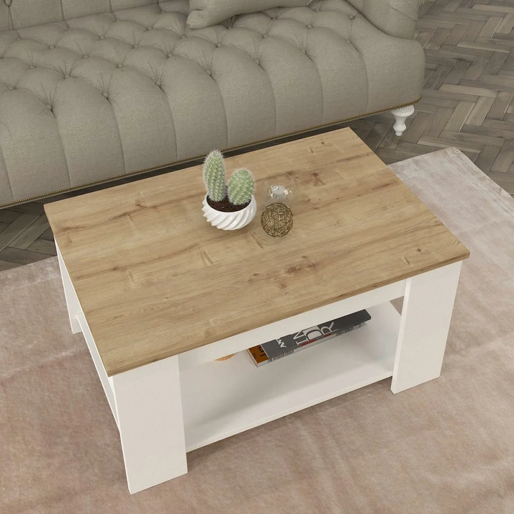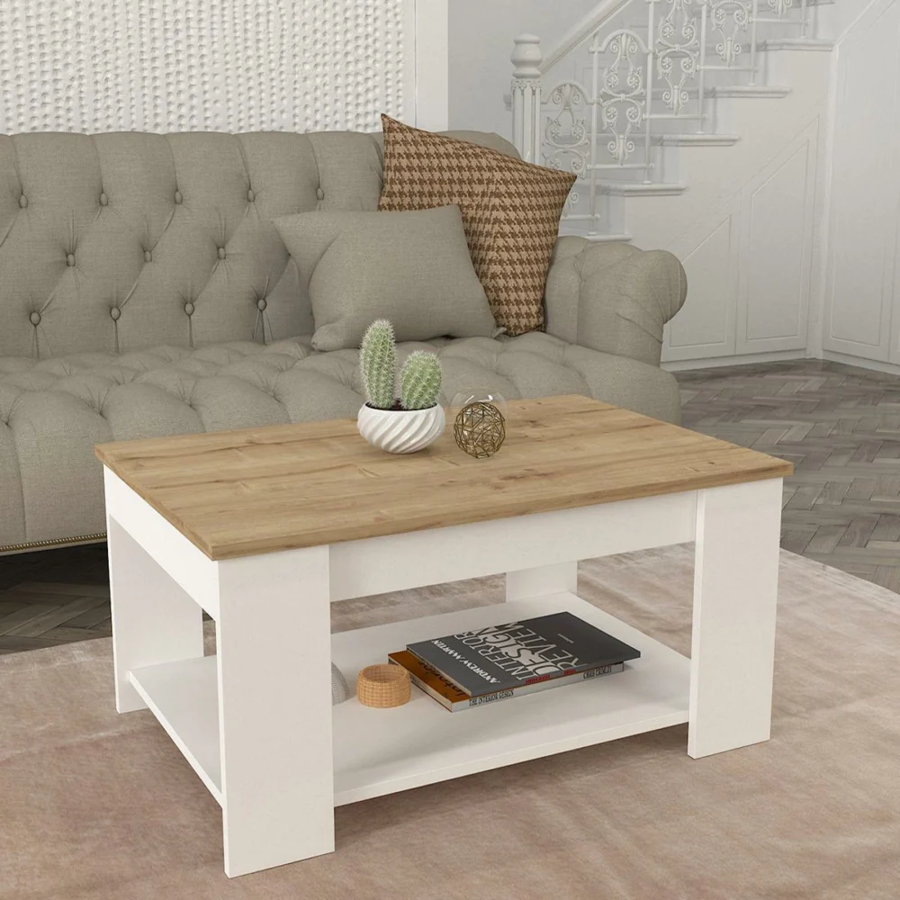 Τραπεζάκι Σαλονιού ArteLibre ALDEN Λευκό/Φυσικό Μοριοσανίδα/Μελαμίνη 90x60x42cm