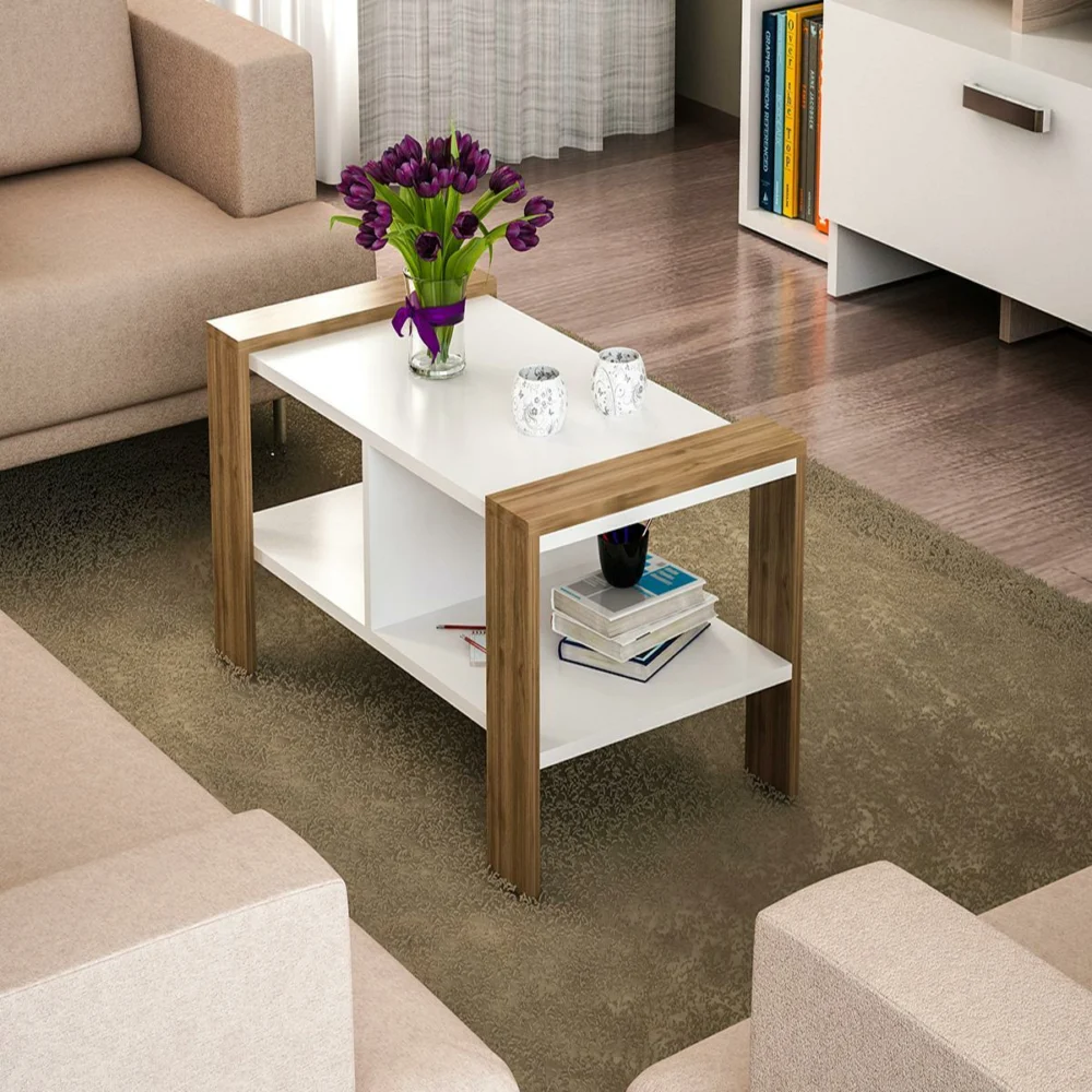 Τραπεζάκι Σαλονιού ArteLibre ARSIDA Λευκό/Καρυδί Μοριοσανίδα/Μελαμίνη 90x60x42cm