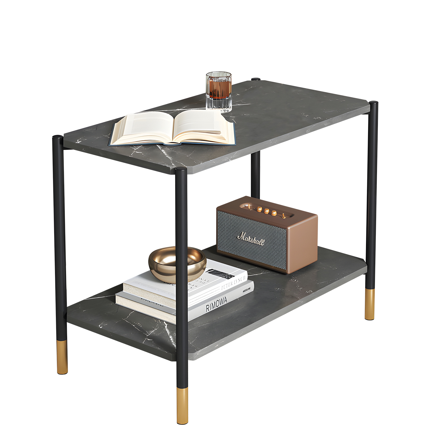 - Χρώμα: επιφάνεια γκρι με όψη μαρμάρου/μαύρος-χρυσός σκελετός