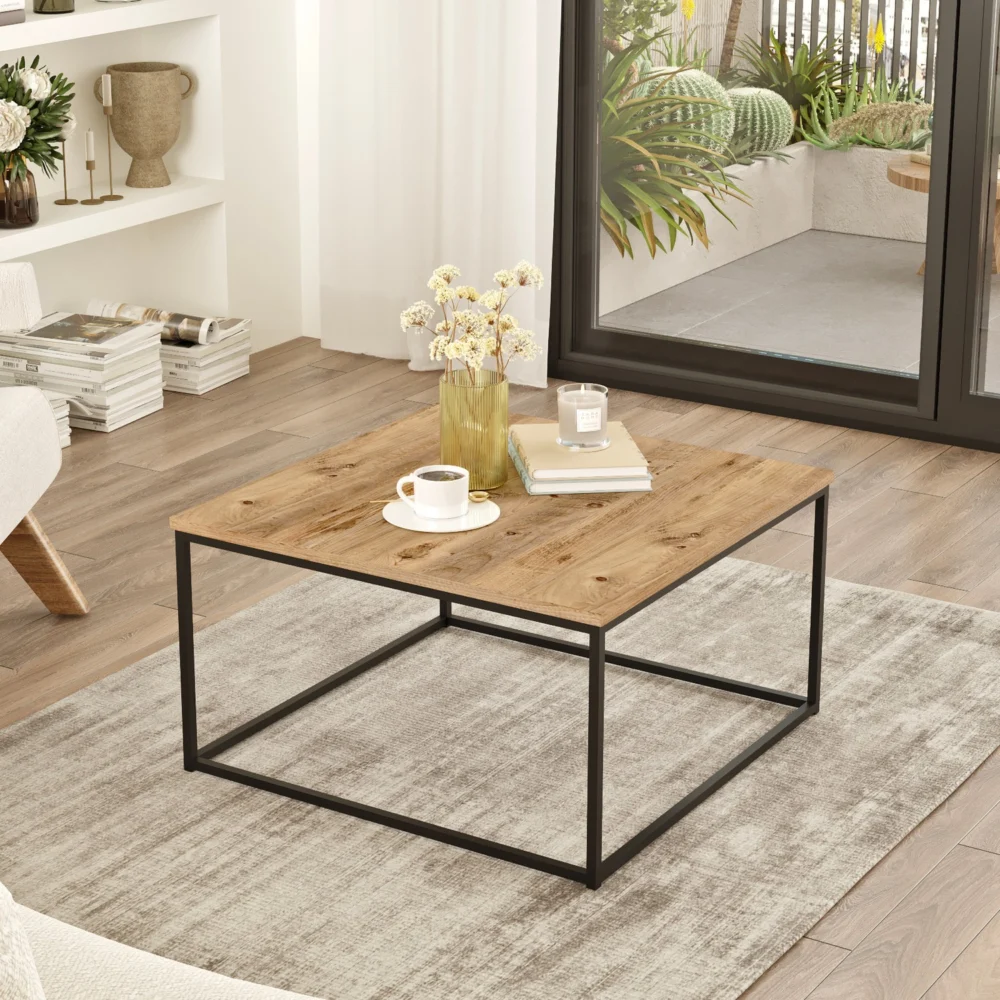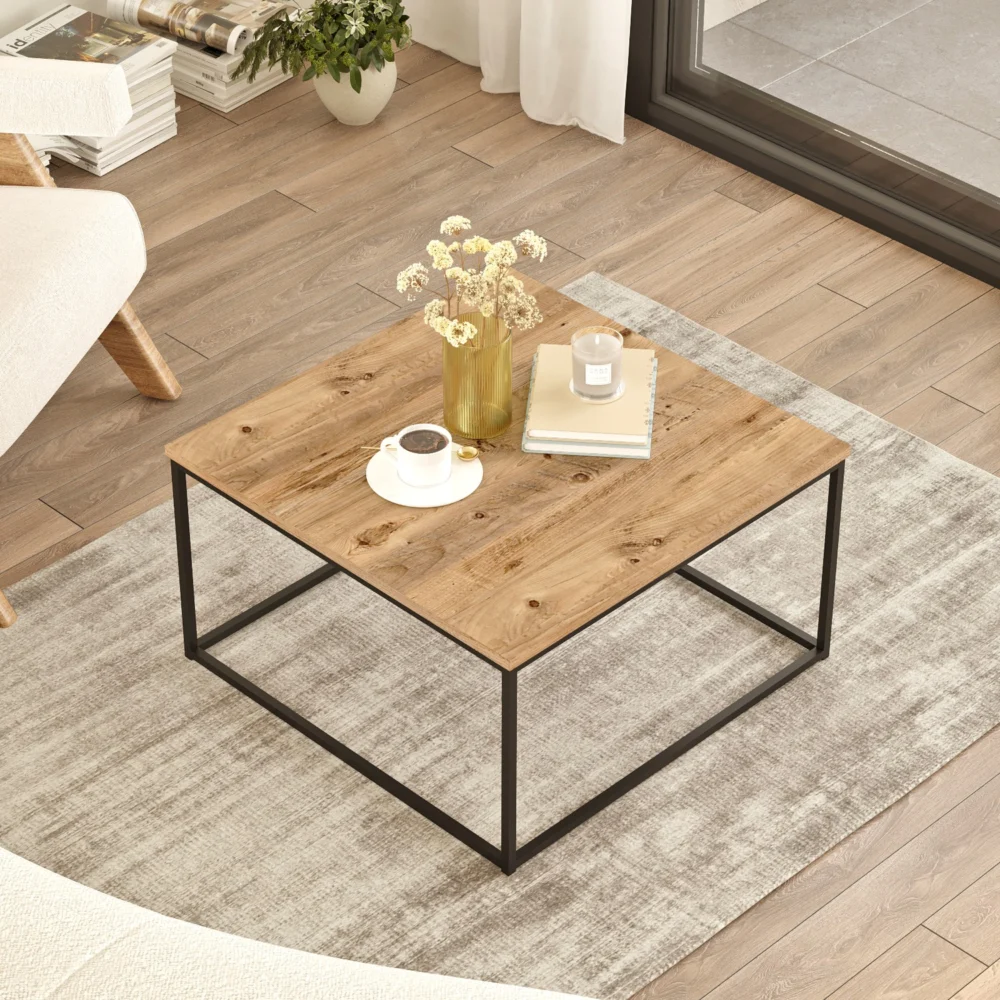 Τραπεζάκι Σαλονιού ArteLibre DUMFRIES Πεύκο/Ανθρακί Μοριοσανίδα/Μέταλλο 72x72x40cm