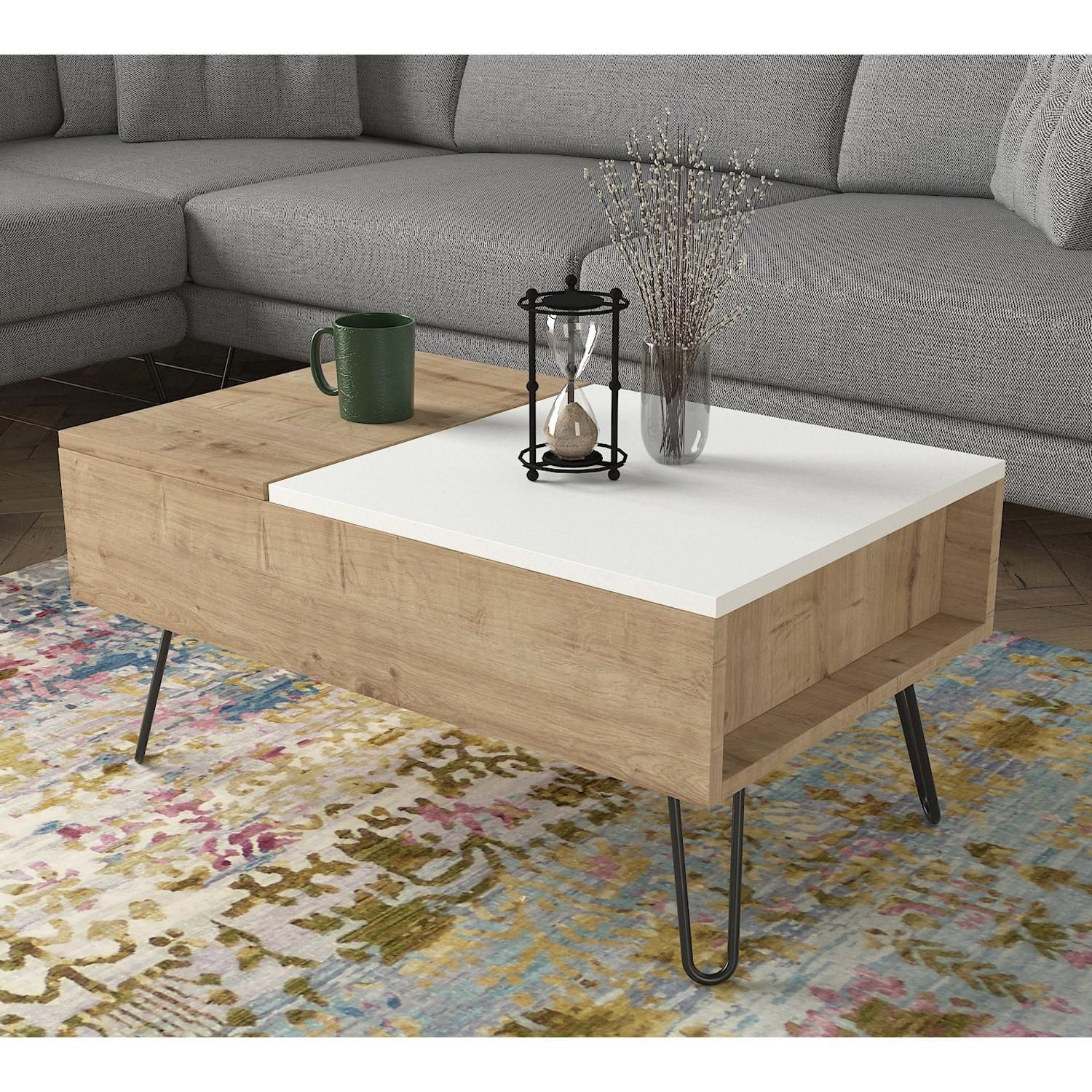 Τραπεζάκι Σαλονιού ArteLibre ALDEN Λευκό/Φυσικό Μοριοσανίδα/Μελαμίνη 90x60x42cm