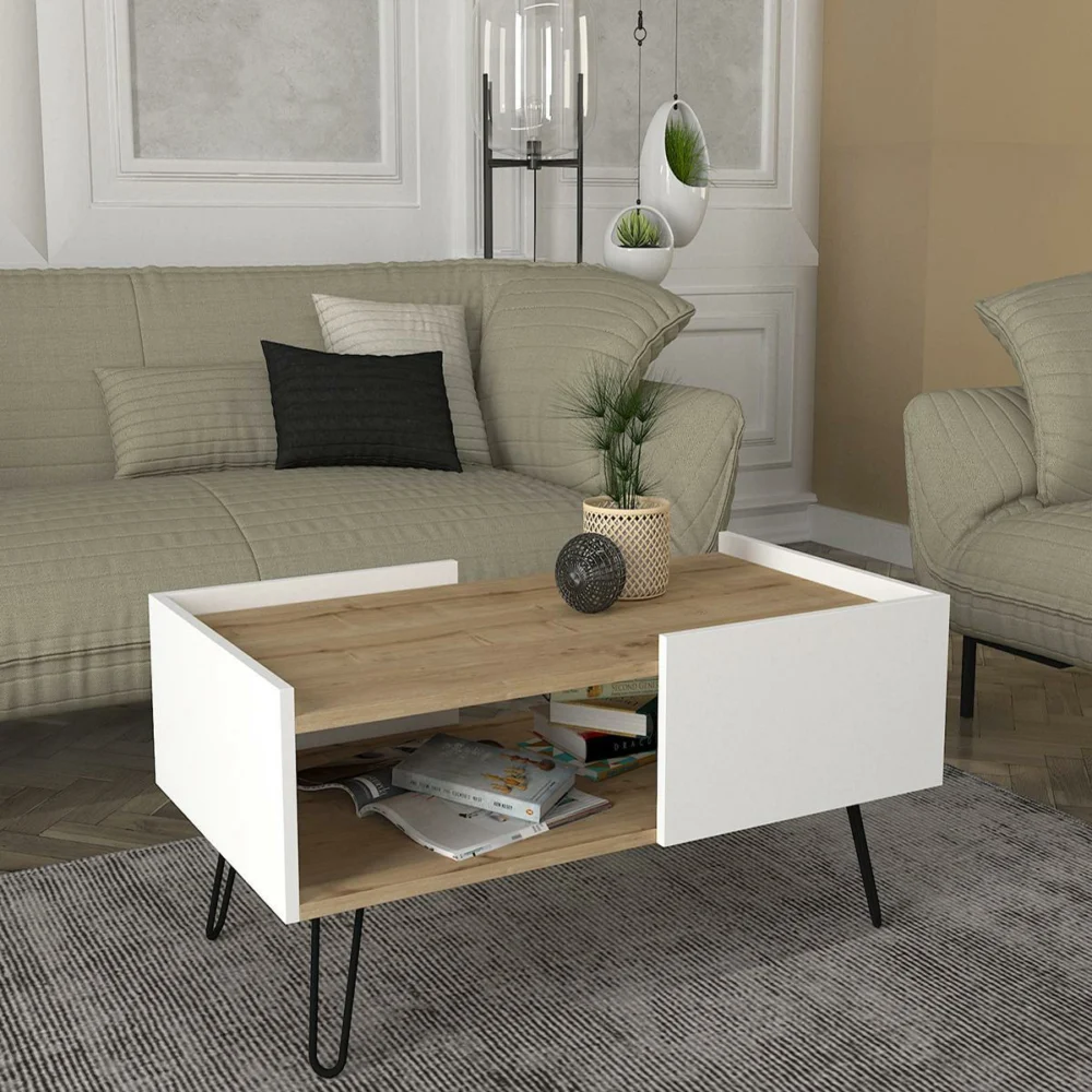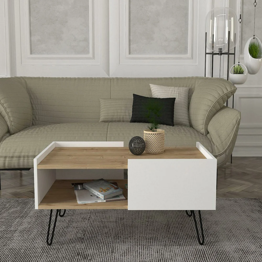 Τραπεζάκι Σαλονιού ArteLibre SERIFOS Φυσικό/Λευκό Μοριοσανίδα/Μελαμίνη 100x55x45cm