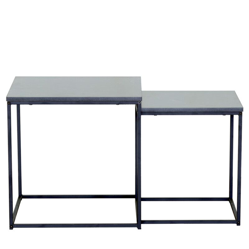 Τραπεζάκι Σαλονιού ArteLibre SOMERTON Μαύρο Μάρμαρο Μοριοσανίδα/Μέταλλο 40x40x50/35x35x45cm Σετ 2Τμχ