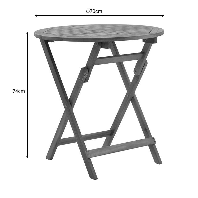 Τραπεζαρία Bistrual-Carpuva pakoworld σετ 3τεμ πτυσσόμενο φυσικό μασίφ ξύλο ακακίας Φ70×74εκ