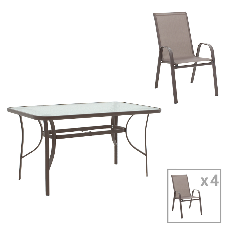 Τραπεζαρία Ensure-Calan σετ 5τεμ pakoworld μέταλλο-textilene καφέ