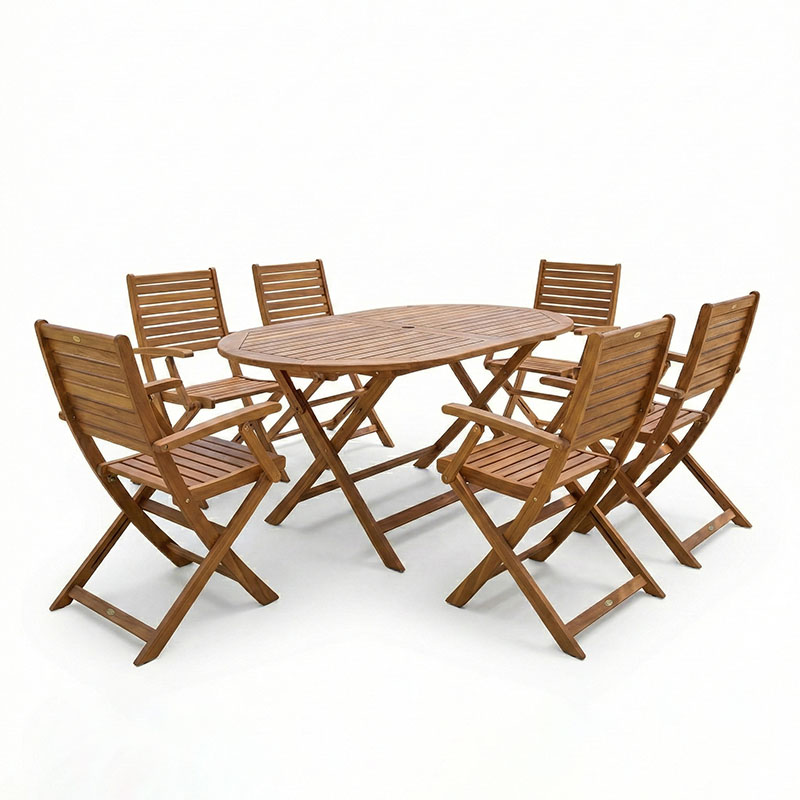 Τραπεζαρία Gorpo-Falov pakoworld σετ 7τεμ φυσικό μασίφ ξύλο ακακίας 130x80x72εκ