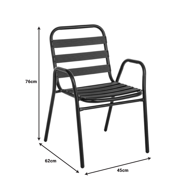 - Σταθερός σκελετός από μέταλλο εξαιρετικής ποιότητας με αντοχή σε φθορά και χρόνο, ενώ τα κομμάτια έδρας και πλάτης είναι κατασκευασμένα από φέτες αλουμινίου. Το μέταλλο παρέχει ανθεκτικότητα και σταθερότητα, ενώ οι φέτες αλουμινίου προσθέτουν ελαφρότητα και μια μοντέρνα αίσθηση στον σχεδιασμό. Η πολυθρόνα αυτή είναι ιδανική για χρήση σε εξωτερικούς χώρους, καθώς η ανθεκτικότητα στις καιρικές συνθήκες του αλουμινίου την καθιστά ανθεκτική σε έκθεση στον ήλιο και την υγρασία.