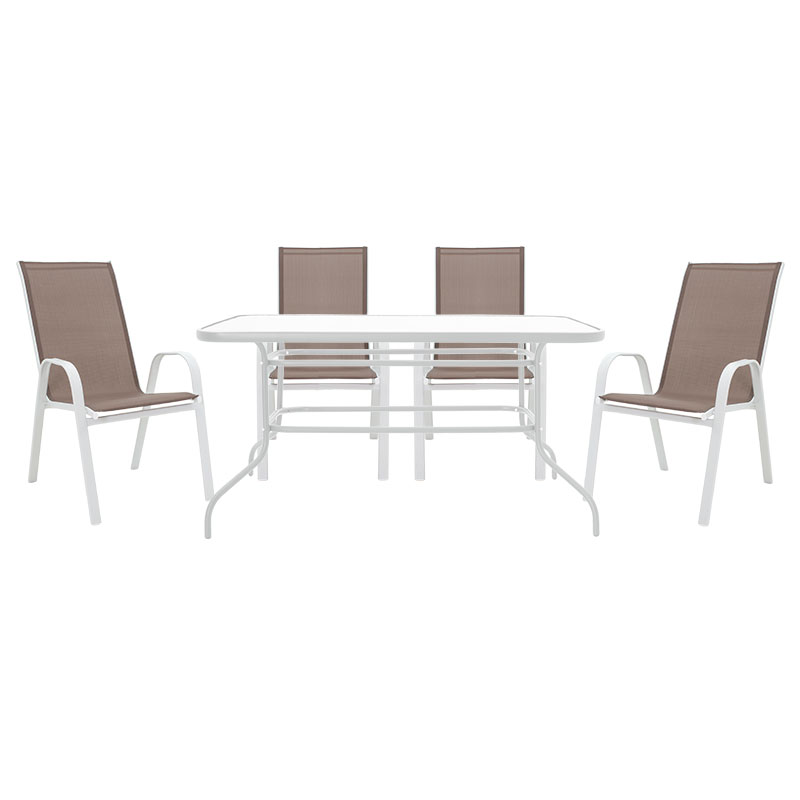 Τραπεζαρία Valor-Calan Β σετ 5τεμ pakoworld μέταλλο λευκό-textilene καφέ 140x80x70εκ