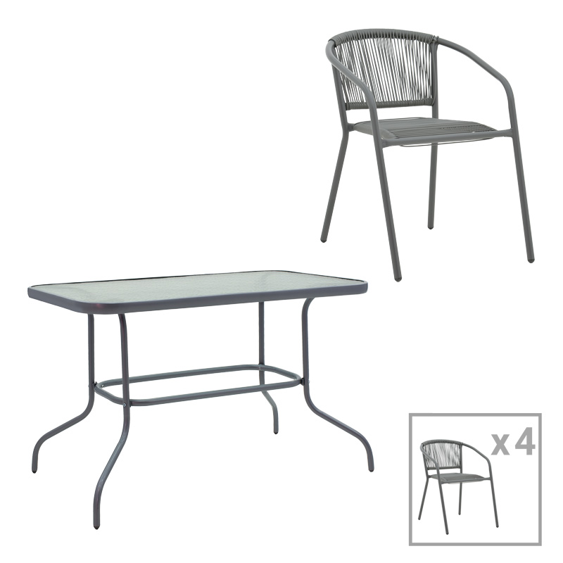 Τραπεζαρία Valor-Lindaria pakoworld σετ 5τεμ μέταλλο ανθρακί-γυαλί-pe rattan 110x60x70εκ