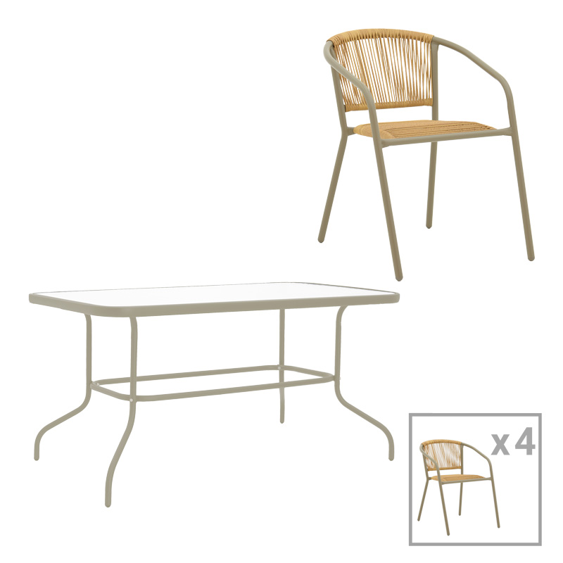 Τραπεζαρία Valor-Lindaria pakoworld σετ 5τεμ μέταλλο σε σαμπανιζέ και pe rattan σε φυσική απόχρωση 110x60x70εκ