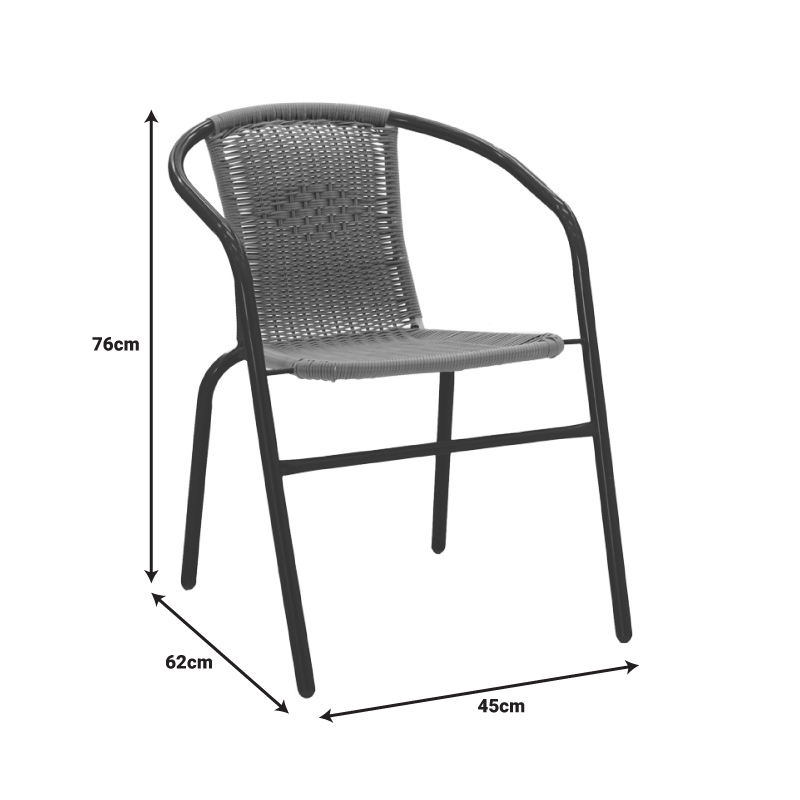 - Σταθερός σκελετός από μέταλλο με αντοχή στην καταπόνηση και στη φθορά. Κυρίως σώμα έδρας-πλάτης από εξαιρετικής ποιότητας PE rattan. Το PE rattan είναι ένα είδος οικολογικού συνθετικού rattan, ανακυκλώσιμο και με μεγαλύτερη ανθεκτικότητα σε σχέση με τα άλλα είδη.