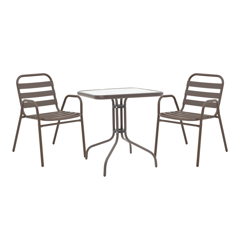 Τραπεζαρία Watson-Sussie pakoworld σετ 3τεμ μέταλλο καφέ-γυαλί 70x70x70εκ