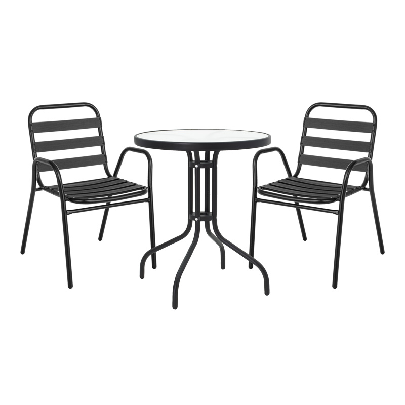 Τραπεζαρία Watson-Sussie pakoworld σετ 3τεμ μέταλλο μαύρο-γυαλί Φ60×70εκ
