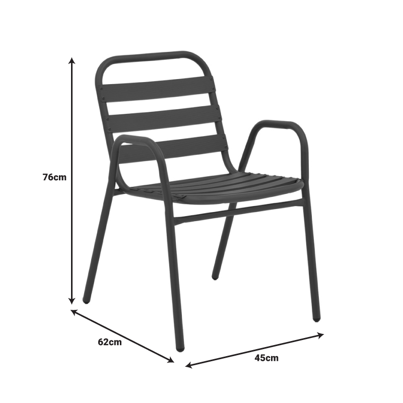 - Σταθερός σκελετός από μέταλλο εξαιρετικής ποιότητας με αντοχή σε φθορά και χρόνο, ενώ τα κομμάτια έδρας και πλάτης είναι κατασκευασμένα από φέτες αλουμινίου. Το μέταλλο παρέχει ανθεκτικότητα και σταθερότητα, ενώ οι φέτες αλουμινίου προσθέτουν ελαφρότητα και μια μοντέρνα αίσθηση στον σχεδιασμό. Η πολυθρόνα αυτή είναι ιδανική για χρήση σε εξωτερικούς χώρους, καθώς η ανθεκτικότητα στις καιρικές συνθήκες του αλουμινίου την καθιστά ανθεκτική σε έκθεση στον ήλιο και την υγρασία.