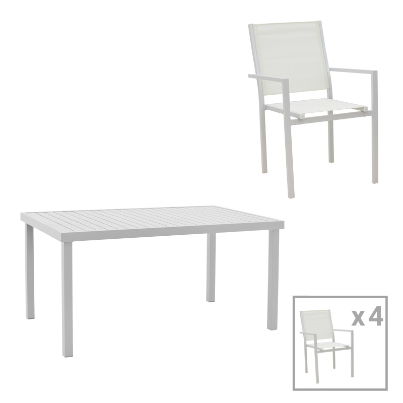 Τραπεζαρία Zacreta-Kliton σετ 5τεμ pakoworld αλουμίνιο σε λευκή απόχρωση 150x80x74εκ