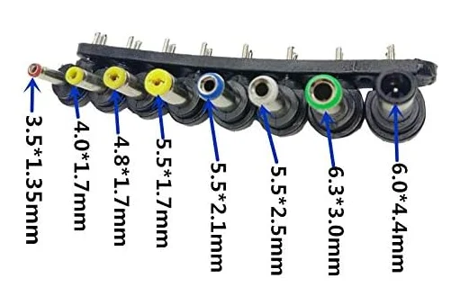 - Connectors: 6 x 1mm / 6.3 x 3.0mm / 5.5 x 2.5mm / 5.5 x 2.1mm / 5.5 x 1.7mm / 4.8 x 1.7mm / 4.0 x 1.7mm / 3.5 x 1.75mm
