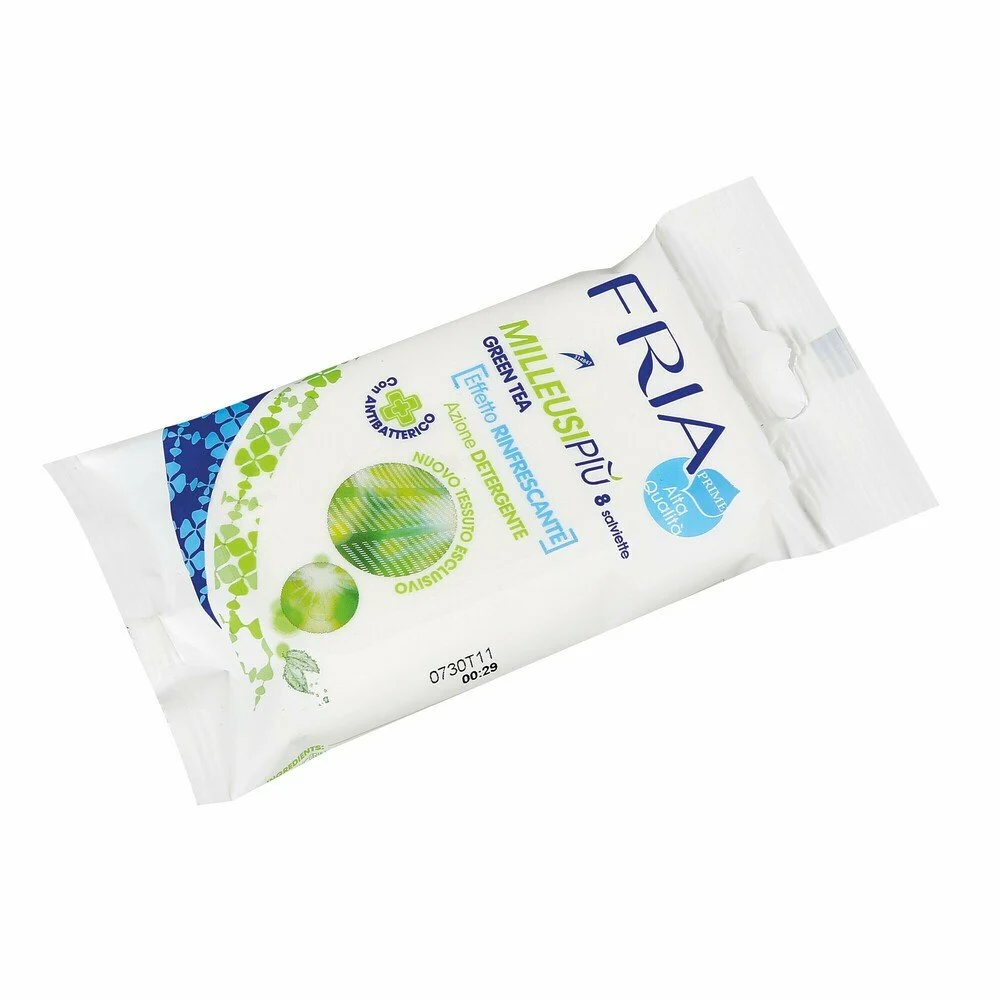 Αντιβακτηριακά, υγρά μαντηλάκια χεριών FRIA από την εταιρεία LAMPA, ιταλικής προέλευσης με άρωμα πράσινο τσάι, που ενισχύει τις αντιφλεγμονώδεις, αντιοξειδωτικές και αντιϊκές δράσεις. Απολυμαντικό αποτέλεσμα, αναζωογονητική δράση με απαλή αίσθηση ενυδάτωσης.