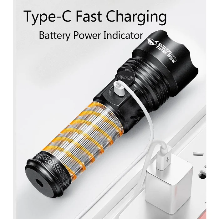 Φακός εργασίας LED με πρακτικό πτυσσόμενο τρίποδο που μπορεί να λειτουργήσει σαν προβολέας εργασίας. Χαρακτηριστικά: Υλικό: aluminum alloy + ABS plastic, Lamp beads: M77 lamp beads + tungsten soft lamp, Μπαταρία: built-in large capacity lithium battery/1200 mAh, Φόρτιση: καλώδιο USB Type-C interface charging (περιλαμβάνεται), Waterproof level: IPX6 waterproof level, Λειτουργίες: Strong front light – Weak front light – Strong filament – Weak filament – Full brightness – Yellow flashing, Διαστάσεις φακού: 4.9cm x 15.8cm, Βάρος: 212.3g, Focus: telescopic focus, Τρίποδο stand πτυσσόμενο, Περιεχόμενα: flashlight * 1, Type-C καλώδιο* 1, Βάση σταντ* 1, packing box.