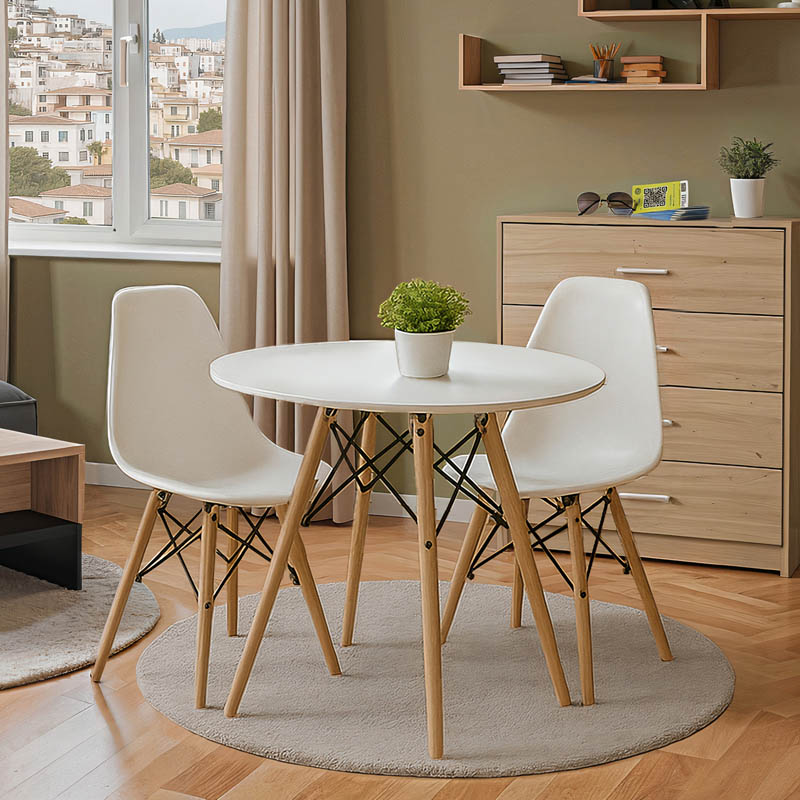 Τραπέζι Julita pakoworld MDF λευκό-πόδια φυσικό Φ80×73εκ