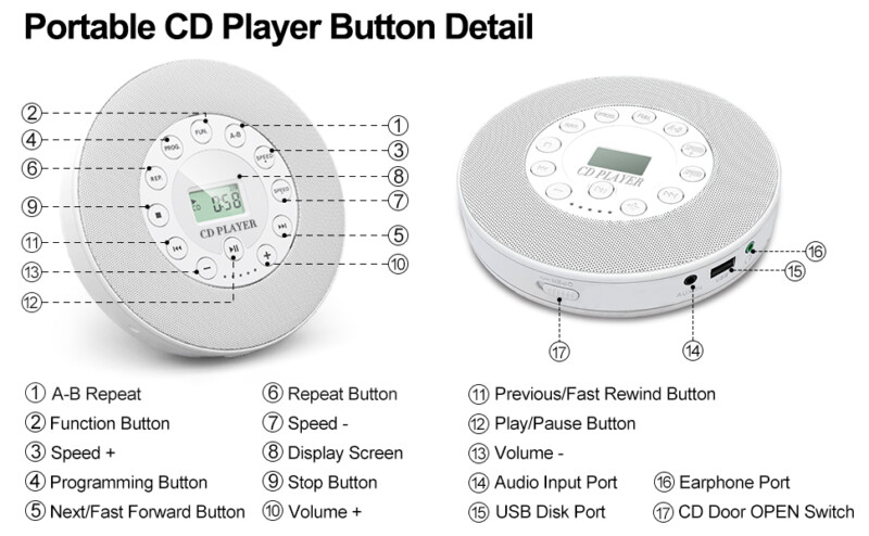 Φορητό επαναφορτιζόμενο CD Player με ενσωματωμένο ηχείο και υποδοχή ακουστικών ιδανικό για τους λάτρεις και τους νοσταλγούς των παλαιών ήχων μέσω των φυσικών άλμπουμ CD.