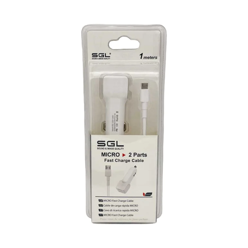 Φορτιστής αναπτήρα αυτοκινήτου με καλώδιο Fast Charge Micro USB και 2 θύρες USB: 1A & 2.1A. Μήκος: 1m. Χρώμα: Λευκό.