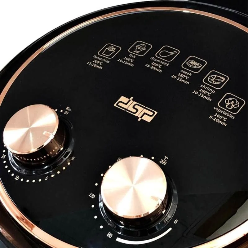 Η DSP φέρνει την νέα τάση μαγειρικής στην κουζίνας σας! Μαγειρέψτε γρήγορα, οικονομικά και απολύτως υγιεινά με την φριτέζα αέρος που θα γίνει αναπόσπαστο κομμάτι της καθημερινής μαγειρικής σας. Ψήνει άψογα, χάρη στην τεχνολογία ομοιόμορφης κατανομής και κυκλοφορίας του αέρα 360°, χωρίς απώλειες και χωρίς να καίει. Το ψήσιμο είναι πολύ πιο υγιεινό καθώς δεν χρειάζεται να προσθέσετε καθόλου λάδι ή άλλα πρόσθετα, ενώ το φαγητό θα αποβάλει τα περιττά λίπη του διατηρώντας την απαραίτητη υγρασία που χρειάζεται. Επιπλέον, θα μαγειρεύετε πολύ πιο οικονομικά από τον οικιακό ενεργοβόρο φούρνο σας. Γνωρίστε τη νέα γενιά μαγειρέματος από την DSP!