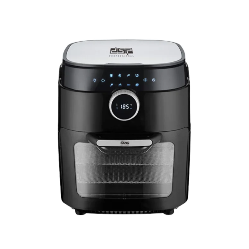 Η DSP φέρνει την νέα τάση μαγειρικής στην κουζίνας σας! Μαγειρέψτε γρήγορα, οικονομικά και απολύτως υγιεινά με την φριτέζα αέρος-φουρνάκι που θα γίνει αναπόσπαστο κομμάτι της καθημερινής μαγειρικής σας. Ψήνει άψογα, χάρη στην τεχνολογία ομοιόμορφης κατανομής και κυκλοφορίας του αέρα 360°, χωρίς απώλειες και χωρίς να καίει. Το ψήσιμο είναι πολύ πιο υγιεινό καθώς δεν χρειάζεται να προσθέσετε καθόλου λάδι ή άλλα πρόσθετα, ενώ το φαγητό θα αποβάλει τα περιττά λίπη του διατηρώντας την απαραίτητη υγρασία που χρειάζεται. Επιπλέον, θα μαγειρεύετε πολύ πιο οικονομικά από τον οικιακό ενεργοβόρο φούρνο σας. Διαθέτει μεγάλη χωρητικότητα 14 λίτρων που σας επιτρέπει να ψήσετε 2 ή και 3 φαγητά παράλληλα ή ακόμη και ένα ολόκληρο κοτόπουλο στο ταψί ή στην περιστρεφόμενη σούβλα που περιλαμβάνεται. Επιπλέον, χάρη στο διαφανές πορτάκι και τον εσωτερικό φωτισμό μπορείτε να ελέγχετε ανα πάσα στιγμή τη πορεία ψησίματος χωρίς να χρειάζεται να ανοίξετε το φουρνάκι. Γνωρίστε τη νέα γενιά μαγειρέματος από την DSP!
