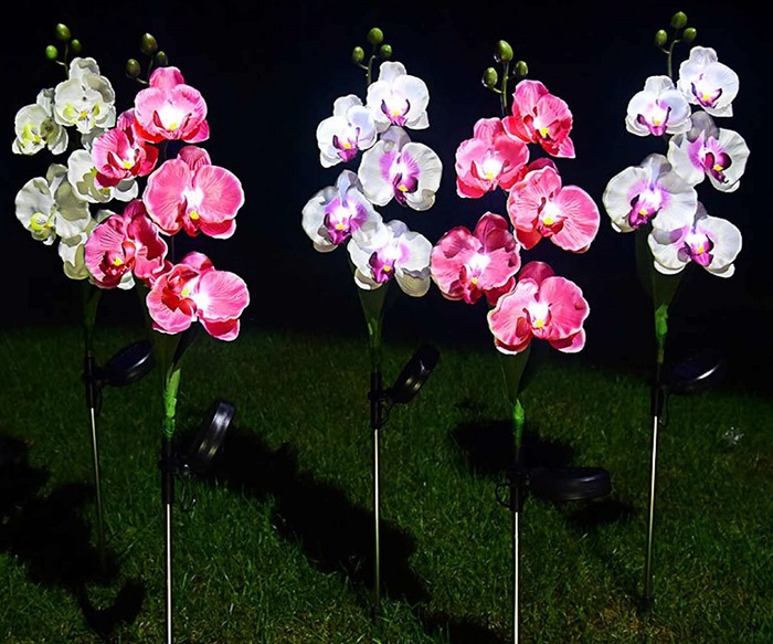 Φωτιζόμενα διακοσμητικά λουλούδια LED με ηλιακό πάνελ φόρτισης και ενσωματωμένη επαναφορτιζόμενη μπαταρία, ιδανικά διακοσμητικά για χρήση σε σημεία που δεν έχουν εύκολη πρόσβαση σε ηλεκτρικό ρεύμα, καθώς τοποθετούνται και χρησιμοποιούνται εξολοκλήρου ασύρματα.