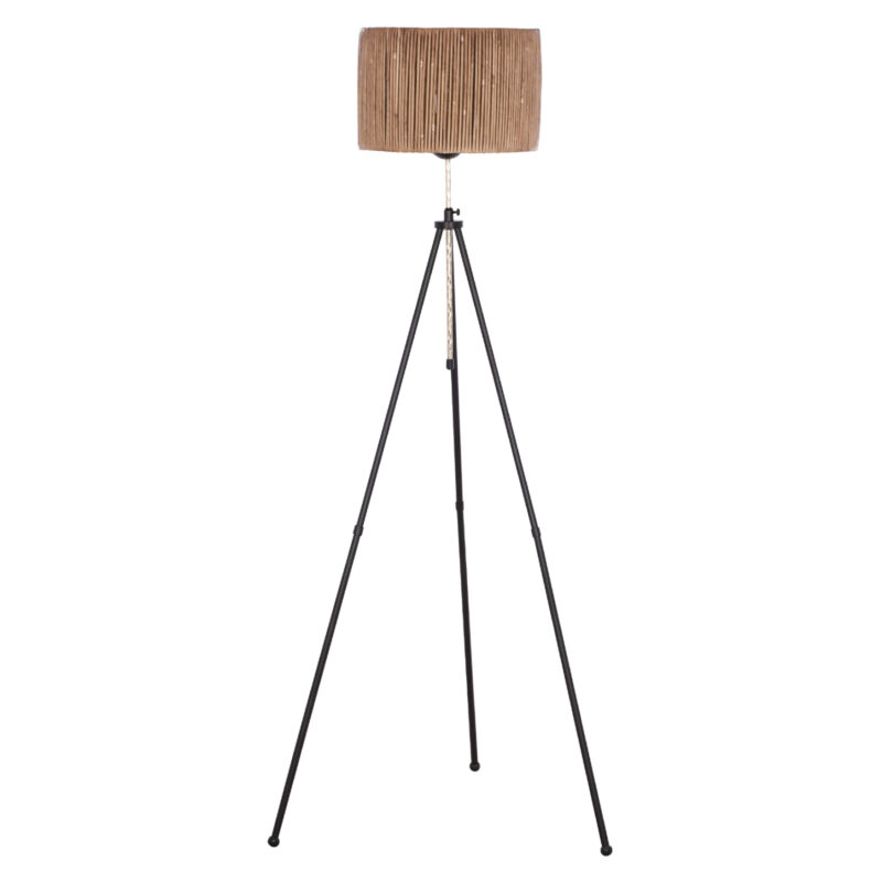 Φωτιστικό δαπέδου σε μαύρη απόχρωση με bamboo καπέλο σε φυσική απόχρωση.