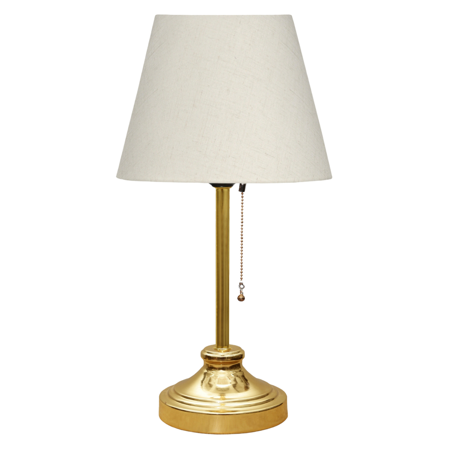 Επιτραπέζιο διακοσμητικό φωτιστικό με μονή κολώνα. Η βάση του φωτιστικού έχει καμπανοειδές σχήμα σε χρυσό γυαλιστερό χρώμα ενώ η κολώνα είναι επίσης σε χρυσό χρώμα. Το «καπέλο» έχει τραπεζοειδές κυκλικό σχήμα σε χρώμα εκρού, ενώ ο διακόπτης του φωτιστικού είναι σε στυλ παραδοσιακού κρεμαστού διακόπτη δίπλα στον λαμπτήρα σε χρυσή αλυσιδούλα. Το φως διαχέεται στον χώρο ευχάριστα και η αντανάκλασή του πάνω στην χρυσή κολωνίτσα του φωτιστικού αλλά και στην γυαλιστερή επιφάνεια της βάσης, παιχνιδίζει ευχάριστα στο μάτι. Αυτού του είδους τα φωτιστικά δεν προορίζονται για φωτιστικά διαβάσματος και αυτό πρέπει πάντα να λαμβάνεται υπόψη κατά την επιλογή τους. Είναι καθαρά διακοσμητικά και το ταίριασμά τους με τον περιβάλλοντα χώρο θα πρέπει να είναι αρμονικό. Αυτό το φωτιστικό είναι κομψό και βολικό σε διαστάσεις παρέχοντας αμέτρητες δυνατότητες «δεσίματος» με την υπόλοιπη διακόσμησή σας. Είναι ένα μικρό έργο τέχνης.