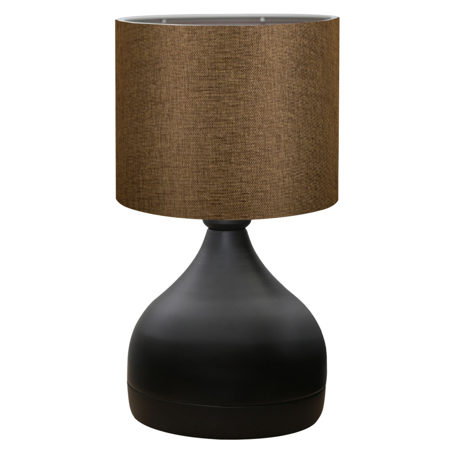 Επιτραπέζιο φωτιστικό σε μαύρο χρώμα με «τύμπανο» σε καφέ χρώμα. Ένα όμορφο φωτιστικό που θα δημιουργήσει την ατμόσφαιρα που πάντα φανταζόσασταν για τον χώρο σας. Το υφασμάτινο «τύμπανο» προσφέρει στον χώρο σας στιγμιαία στυλιστική αναβάθμιση. Ειδικά, το καφέ χρώμα του «τύμπανου» πραγματικά δίνει την εντύπωση της πολυτέλειας χωρίς όριο. Το σώμα του φωτιστικού είναι σε καλαίσθητο σχήμα μισής μπουκάλας και ο συνδυασμός με το «τύμπανο» δημιουργεί μια οικεία εικόνα που θα σας χαλαρώσει μετά από μια έντονη μέρα. Αυτού του είδους τα φωτιστικά δεν προορίζονται για φωτιστικά διαβάσματος και αυτό πρέπει πάντα να λαμβάνεται υπόψη κατά την επιλογή τους. Είναι καθαρά διακοσμητικά και το ταίριασμά τους με τον περιβάλλοντα χώρο θα πρέπει να είναι αρμονικό. Αυτό το φωτιστικό είναι λιτό, κομψό και βολικό σε διαστάσεις παρέχοντας αμέτρητες δυνατότητες «δεσίματος» με την υπόλοιπη διακόσμησή σας. Είναι ένα μικρό έργο τέχνης.