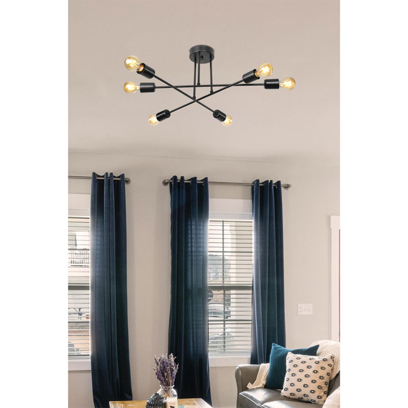 Φωτιστικό οροφής εξάφωτο PWL-1122 pakoworld Ε27 μαύρο Φ61×25εκ