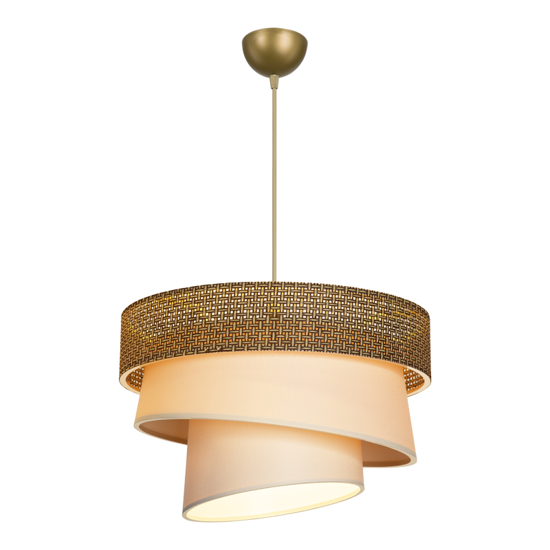Φωτιστικό οροφής μονόφωτο Tazma pakoworld ύφασμα σε καφέ και κρεμ απόχρωση Φ38×65εκ