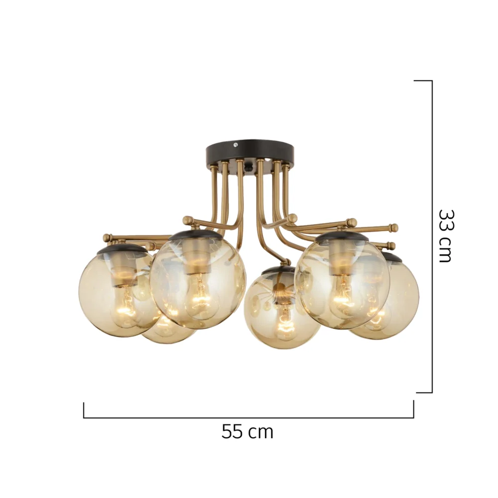 Φωτιστικό Οροφής ArteLibre NORMA Εξάφωτο Χρυσό/Μελί Μέταλλο/Γυαλί 55x33cm