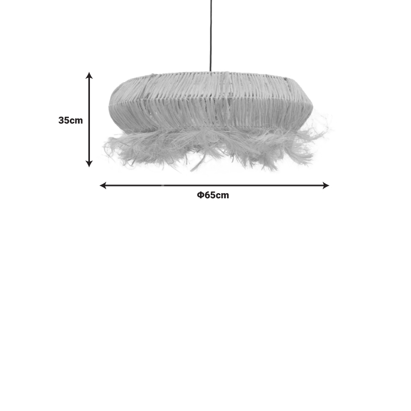 - Abaca: Το abaca είναι ένα φυσικό υλικό που προέρχεται από τις ίνες του φυτού Musa textilis (είδος μπανάνας), γνωστού και ως Manila hemp. Οι ίνες abaca εξάγεται από τον πολτό του στελέχους της μπανανιάς και είναι γνωστή για την αντοχή, την ανθεκτικότητα και την αιθέρια υφή της. Χρησιμοποιούνται ευρέως για την κατασκευή προϊόντων χειροτεχνίας όπως καλάθια, χαλιά, τσάντες και διακοσμητικά αντικείμενα. Τα κρεμαστά φωτιστικά από abaca είναι μια δημοφιλής επιλογή για σαλόνια, τραπεζαρίες και κρεβατοκάμαρες. Μπορούν να προσθέσουν μια τροπική ή boho αίσθητική σε κάθε χώρο.