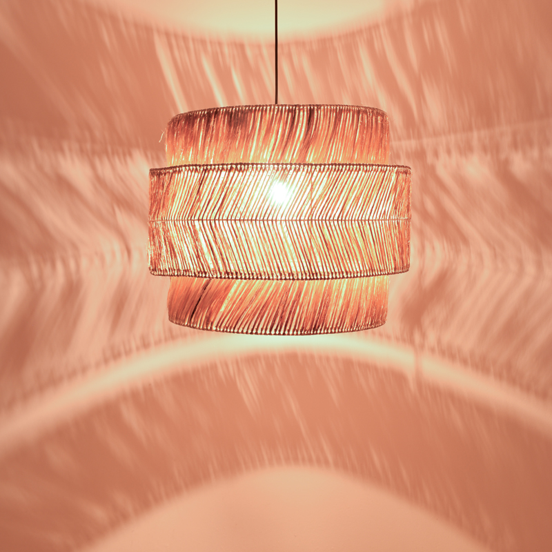 - Abaca: Το abaca είναι ένα φυσικό υλικό που προέρχεται από τις ίνες του φυτού Musa textilis (είδος μπανάνας), γνωστού και ως Manila hemp. Οι ίνες abaca εξάγεται από τον πολτό του στελέχους της μπανανιάς και είναι γνωστή για την αντοχή, την ανθεκτικότητα και την αιθέρια υφή της. Χρησιμοποιούνται ευρέως για την κατασκευή προϊόντων χειροτεχνίας όπως καλάθια, χαλιά, τσάντες και διακοσμητικά αντικείμενα. Τα κρεμαστά φωτιστικά από abaca είναι μια δημοφιλής επιλογή για σαλόνια, τραπεζαρίες και κρεβατοκάμαρες. Μπορούν να προσθέσουν μια τροπική ή boho αίσθητική σε κάθε χώρο.