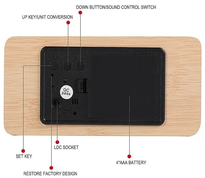 Ψηφιακό ρολόι–Ξυπνητήρι LED, σε ιδιαίτερο σχεδιασμό με εφέ ξύλου. Πρακτικό μέγεθος που μπορεί να τοποθετηθεί παντού και να προσδώσει σύγχρονη νότα στο χώρο σας.