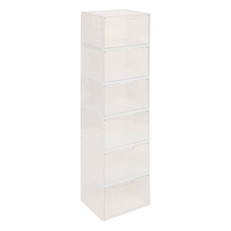 Διατηρήστε το σαλόνι σας οργανωμένο και κομψό με το Spacy Plus! Πρόκειται για ένα σύστημα αποθήκευσης που περιλαμβάνει 6 διαφανή κουτιά, ιδανικά για την αποθήκευση έξι ζευγαριών παπουτσιών.