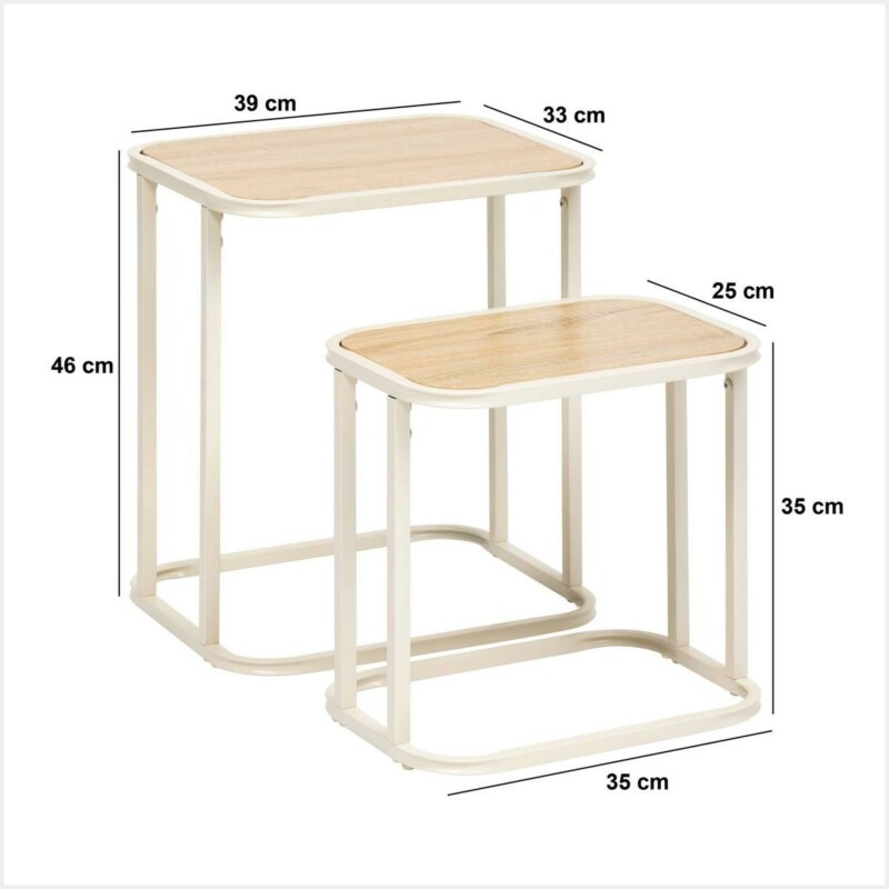 Σχεδιασμένα με μια σκελετική κατασκευή από μπεζ μέταλλο και επιφάνεια από ξύλο MDF με φυσικό αποτέλεσμα, αυτά τα τραπέζια που στοιβάζονται προσθέτουν μια μοντέρνα και ζεστή πινελιά στο χώρο σας.